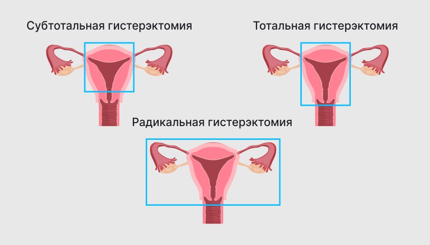 - radikální – odstranit dělohu a děložní hrdlo, část pochvy, vaječníky, vejcovody.